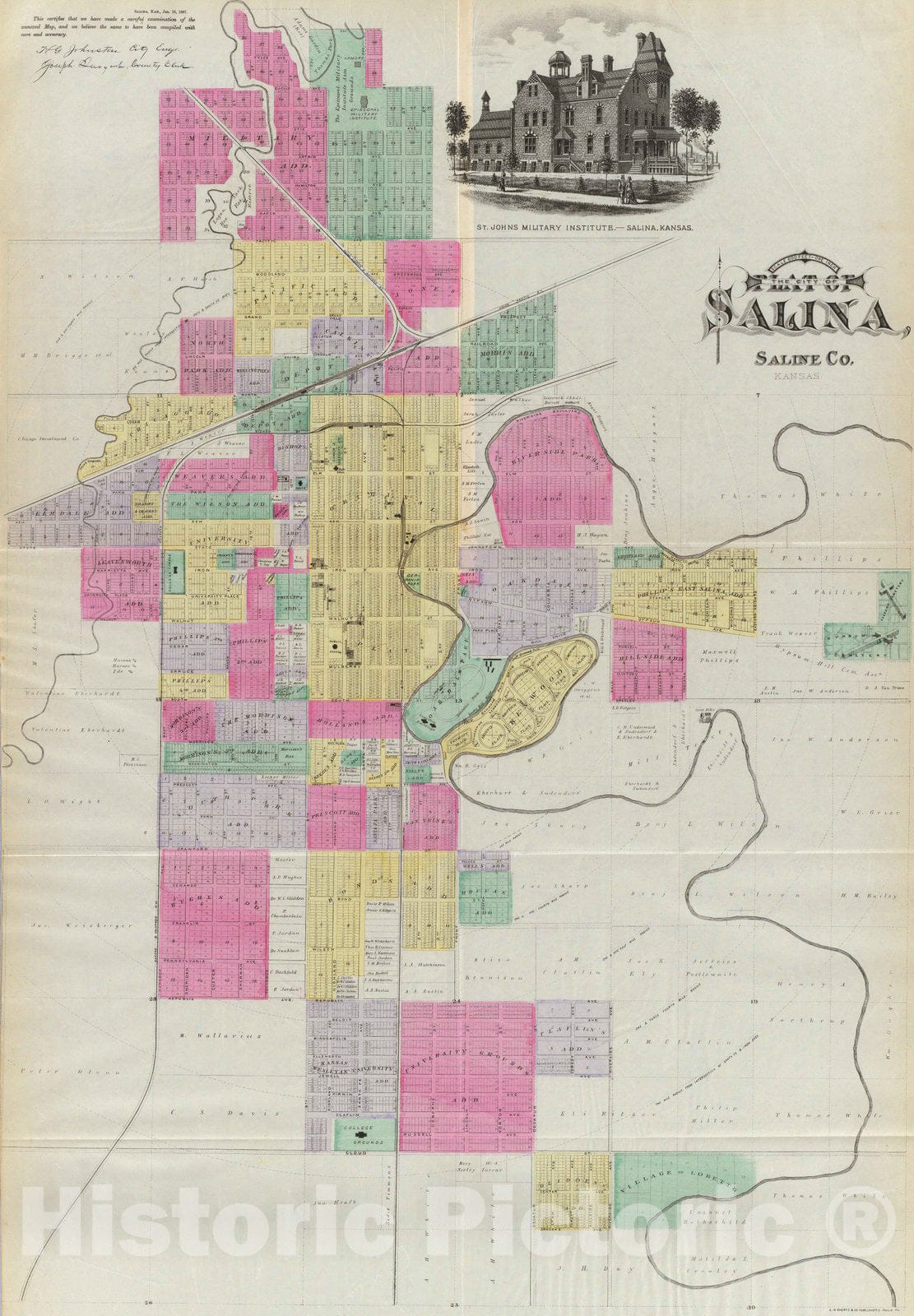 Historic Map : 1887 Plat of the City of Salina, Kansas. Vintage