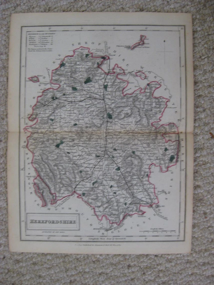 ANTIQUE 1842 HEREFORDSHIRE COUNTY HEREFORD ENGLAND HANDCOLORED MAP