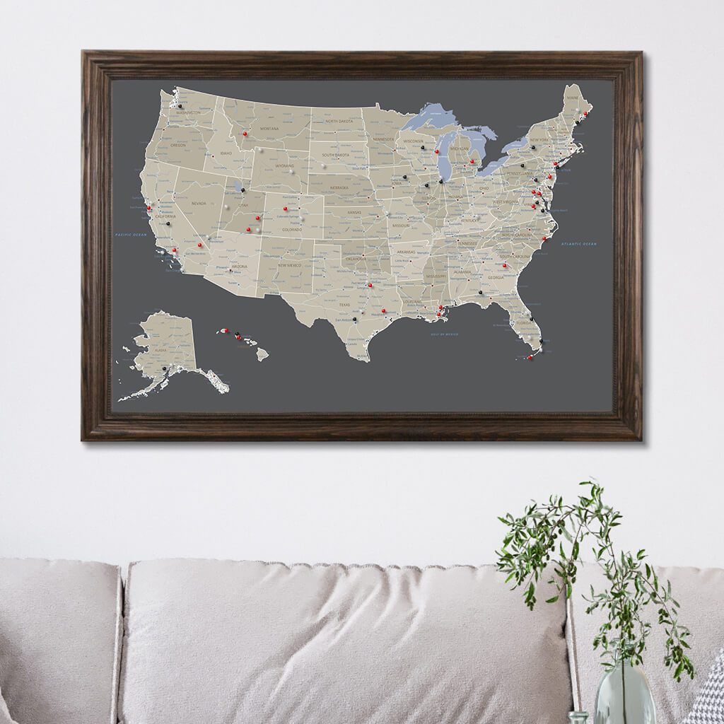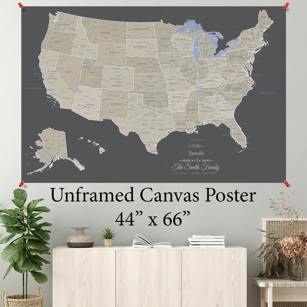 Earth Toned Canvas United States Map | Framed US Map with Push
