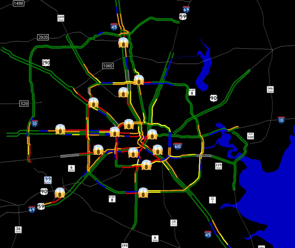 Transtar Traffic Map Houston – Mention the words “rush hour traffic” to a Houstonian, and you’re likely to be met with a groan and a shoulder shrug: That’s just how it is here. Each August when school starts, it can seem even worse . According to Houston Transtar, this happened at 8:16 a.m. in the outbound, or southbound, lanes. Check back for more on this developing story. You can check traffic at anytime on the map below. .
