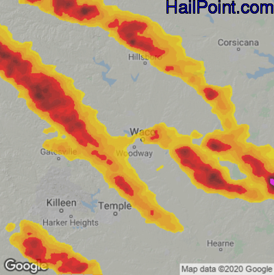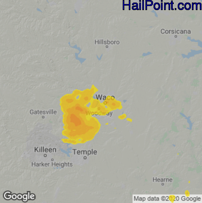 Hail Map for Waco, TX Region on May 9, 2024